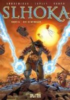 Die Blutbögen Noch immer tobt auf der Welt Link Arkohide der Krieg der Flamme zwischen den Reichen von Okrane und Zeide, als der Herrscher Okranes, der Pupurne, eine Waffe zündet, die nicht nur die Truppen Zeides hinwegfegt, sondern auch die eigene Hauptstadt, Chadry Bakan, in Schutt und Asche legt und Millionen Tote fordert. Unterdessen kommt es im zeidischen Verkhomoi-Gebirge zum Showdown zwischen Slhoka – dem jungen Piloten, den die Götter des Planeten mit unermesslicher Macht ausgestattet haben und der von deren geisterhaften Gesandten Shani begleitet wird -, der Söldnerin Svendai, dem okranischen Coroner Kraal auf der einen und Slhokas großer Liebe Leidjill, die auf Grund ihrer Gehirnwäsche für den Purpurnen kämpft, auf der anderen Seite. Mit vereinten Kräften gelingt es den drei unfreiwilligen Verbündeten, die junge Frau mit den göttergegebenen Kräften zu überwältigen, als kurz darauf der zeidische Gouverneur Interio vor Ort auftaucht und den Streitern von der wahnsinnigen Zerstörungs-Tat des Purpurnen berichtet. Zudem erklärt er ihnen, dass der Despot eine ultimative Waffe zu zünden gedenkt, die auf einer der Inseln im Lamprizer Archipel verborgen ist, dem Ort also, an dem Shloka und sein Freund Ar'n einst notlandeten und der von den friedlichen Goldköpfen, dem Volke Leidjills, bewohnt wird. Sofort brechen Slhoka und seine Gefährten – einschließlich Leidjill - auf, um zum einen den Genozid an den friedlichen Waldmenschen und zum anderen den Untergang Link Arkhoides zu verhindern. Während der junge Pilot hier jemanden trifft, den er dort nicht vermutet hat, muss Leidjill sich endgültig mit der Erkenntnis abfinden, dass ihr Volk Frieden und Unschuld mittlerweile verloren hat. Svendai wiederum leidet zunehmend an ihrer unerfüllten Liebe zu Slhoka, dessen Herz nach wie vor und trotz ihrer Gefährlichkeit der goldhaarigen jungen Frau gehört. Kraal wiederum kann immer noch nicht glauben, dass sein Befehlshaber, der Purpurne, tatsächlich die Vernichtung Chadry Bakans befohlen hat, und sucht den Herrscher, der mittlerweile im Archipel eingetroffen ist, auf, nur um zu erfahren, dass der Despot tatsächlich noch grausamer und intriganter ist. Als es dem Purpurnen schließlich gelingt, die ultimative Waffe zu zünden, können nur Slhoka und Leidjill gemeinsam der Vernichtung Einhalt gebieten, doch die beiden Liebenden liegen in Folge eines Mordversuchs im Sterben. Mit "Die Blutbögen" strebt der vierbändige erste Zyklus' der Slhoka-Alben-Reihe seinem gleichermaßen dramatischen wie tragischem Höhepunkt entgegen. Die Handlung selbst ist von Godderidge dynamisch, actionreich und vergleichsweise schnörkelos inszeniert, sodass der kundige Leser trotz der Wartezeit auf diesen vierten Band keinerlei Probleme hat, sich zurecht zu finden; und selbst Neueinsteiger werden ihre Freude an der dynamischen Handlung haben, die in einem geradezu epischen Finale würdig endet. Was die Figuren betrifft, so liefert der Autor nicht nur eine konsequente, glaubwürdige Fortschreibung der Charaktere, sondern macht sie im Grunde allesamt zu Verlieren des Krieges, wobei er zugleich einige Fragen nach der weiteren Zukunft offen lässt. Das Artwork der neuen Kreativen – Ceyles und Torta – unterscheidet sich zwar im Großen nicht signifikant von dem Flochs und Lyses, im Detail sind dennoch einige Unterschiede erkennbar. So ist die neue Koloration alles in allem einen Hauch dunkler und weicher, während die Unterschiede in den Zeichnungen etwas größer sind: Ceyles Figuren sind insgesamt manghafter als die Flochs; sie weisen insbesondere rundere Gesichtern, größere Augen und vor allem überzeichnetere Mimiken auf, was den Figuren einen nach meinem Geschmack zu kindgerechten, zu niedlichen Ausdruck verleiht und dadurch die dramatische und tragische Note der Story abschwächt. Fazit: Ein episches und furioses Finale, das diesen ersten Zyklus würdig abschließt und die Erwartungen der Fant trotz marginaler Schwächen im Artwork nicht enttäuscht.