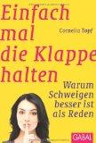 Wenn eine Lösungsstrategie weniger auf ihre Ursachen als auf ihre Wirksamkeit hin untersucht und dargelegt wird, kann man im psychologischen Bereich davon ausgehen, dass man es hier mit der klassischen Verhaltenstherapie zu tun hat. Cornelia Topf ist nicht als Psychologin ausgebildet, aber in ihrem durchaus interessanten Buch "Einfach mal die Klappe halten" wimmelt es nur so von modernen Kraftausdrücken der pragmatischen Veränderungswelle: Coaching, Pacing, Metakommunikation und andere hell leuchtende Schlagwörter machen deutlich, dass es sich hier um ein äußerst durchdachtes und wohlfeines Buch für den Mensch des 21. Jahrhunderts handelt, der, umgeben von allzu viel Lärm, sich nach nichts mehr sehnt als nach innerer Stille (nur weiß er das meistens gar nicht).