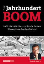 Harry S. Dent hat in seinem Buch „Der Jahrhundertboom“ für Anleger eine gute und eine schlechte Nachricht. Die gute ist, nach Dents Ansicht, steht der größte Börsenboom der Geschichte unmittelbar bevor. Die schlechte lautet, dieser Boom werde auf absehbare Sicht auch der letzte sein, gefolgt von einer Wirtschaftskrise, die der Autor mit der großen Depression in den dreißiger Jahren vergleicht.
