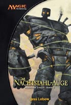 “Das Nachtstahl-Auge” setzt da fort, wo Band 1, “Die Monde von Mirrodin”, endete. Glissa, Bosh, Slobad und Bruenna irren durch die Lakunen im Inneren Mirrodins, verfolgt sowohl von den Häschern des Pontifex unter der Führung Mareks, als auch von Malil, einem Gesandten Memnarchs, der eine Armee von Gleichmachern befehligt. Pontifex möchte Glissa am liebsten tot sehen, während Memnarchs Interesse einer lebenden Elfin gilt, da er in ihr einen göttlichen Funken vermutet, mit dem er seine eigene Fleischwerdung zu stoppen hofft, um danach mit ihrer Hilfe zu einem Weltenwanderer aufzusteigen.