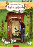 Auch im neuesten Band „Findus zieht um“ findet man wieder allerlei Absurditäten in den Bildern, was das Ganze vor allem für größere Kinder spannend macht. Sei es der überdimensionierte Schlüssel an Petterssons Bettschränkchen, der Lotsenmuckla beim Abtransport des Plumpsklos, die abgeschnürte und bewohnte Regentonne oder die übergroßen Streichhölzer statt Holzscheiten im Holzkorb in der Küche. Die Geschichte selbst beginnt damit, dass Pettersson davon genervt ist, dass Findus ab morgens um 4 Uhr in seinem Bettchen auf und ab springt. Er stellt ihn vor die Wahl, damit aufzuhören, oder eben anderswo zu wohnen. Und siehe da: Findus entscheidet sich fürs Umziehen, was Pettersson natürlich heillos überrascht. Er baut das alte Plumpsklo für Findus um und dieser geht ganz in seinem neuen Heim auf. Pettersson bemerkt auf einmal, wie einsam es ohne den Kater im Haus ist und macht zaghafte Versuche, Findus zur Rückkehr oder wenigstens zu gemeinsamen Aktivitäten zu bewegen - zunächst vergeblich. Dann jedoch merkt auch Findus, dass es eigentlich im Haus bei Pettersson am schönsten war und Stück für Stück beginnt er wieder, im Haus zu wohnen. Am Ende schließen die beiden einen Kompromiss zum Betthüpfen und die Welt ist für beide wieder in Ordnung.