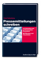 Das Buch „Pressemitteilungen schreiben“ von der Autorin Viola Falkenberg gibt auf 267 Seiten einen ausführlichen Überblick über die wichtigsten Grundregeln und Standards um eine professionelle Pressemitteilung zu erstellen – vom richtigen Textanfang über journalistisches Schreiben und der Themenfindung bis zum korrekten Zitieren. Gleichzeitig unterstützt das Buch bei der Ermittlung der Medienrelevanz, beim Überwinden von Schreibblockaden, bei rechtlichen Fragen und dem Erstellen eines Presseverteilers. Über die Möglichkeiten und Gefahren von Interventionen nach Veröffentlichungen informiert es ebenso wie über die effiziente Nutzung erfolgreicher Pressearbeit. Außerdem informieren ausgewiesene Kommunikationsprofis in sieben Kurzinterviews über Tipps und Tricks, um wirkungsvoll Öffentlichkeitsarbeit zu betreiben. Zu guter Letzt ermöglichen zehn Übungen die bisher in Erfahrung gebrachten Informationen in Sache Öffentlichkeitsarbeit praxisnah anzuwenden. Mögliche Lösungsvorschläge dieser Übungen liegen dem Buch anbei.
