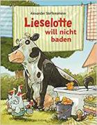 Ist eine Kinderbuchfigur erst einmal etabliert, muss nach einer Weile mit den bekannten und beliebten Elementen Neuland betreten werden, um Figur und Buchreihe nicht nur neuen Lesern schmackhaft zu machen, sondern auch den bisherigen Lesern Anreize zu bieten. Lieselottes kleiner Kosmos auf dem Hof der Bäuerin darf dabei nicht zu sehr ausgedehnt werden. Andererseits ist ihre Rolle als „Kind“ der Bäuerin so variabel, dass man wunderbar allerlei Erziehungsthemen integrieren kann. So geschah es auch hier: Lieselotte will nicht baden. Kinder können sich beim Vorlesen sofort mit Lieselottes Unlust identifizieren und die vorlesenden Eltern wiederum erkennen so manchen Kampf um saubere Ohren sofort wieder. Eine win-win-Situation also. Was genau passiert? Lieselotte und die anderen Tiere spielen ein tolles Spiel auf dem Acker und sehen dementsprechend aus. Alle Tiere müssen vor dem Zubettgehen sauber gemacht werden. Nur Lieselotte ziert sich und schleicht sich davon, um sich anschließend erfolgreich vor der Bäuerin zu verstecken – schon das sind große Lacher, denn die wie immer liebevollen Illustrationen überzeichnen die Absurdität der Situation kindgerecht. Die Bäuerin entdeckt Lieselotte endlich zwischen den Johannisbeersträuchern und versucht sie dann, in den Kontakt mit Wasser zu bekommen – und scheitert erwartungsgemäß. Doch am Ende kommt ganz überraschend eine Lösung, die alle bedröppelt da stehen lässt und letzten Ende zur harmonischen Badezusammenarbeit führt. Doch eine Wendung kommt noch am Ende, denn die Bäuerin hatte natürlich vergessen, dass sie Lieselotte in eine Waschfalle locken wollte… und wie das dann seinen Ausgang nimmt, darf jeder selbst erlesen.